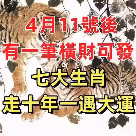 4月11號後有一筆橫財可發,走十年一遇大運的七大生肖!
