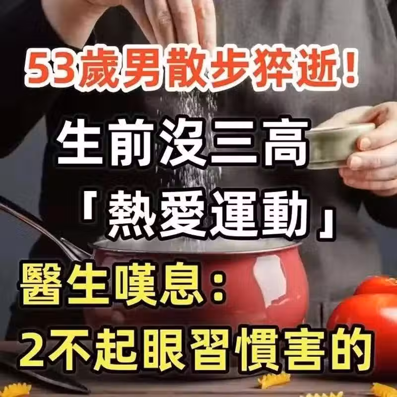 53歲男散步猝逝! 生前沒三高「熱愛運動」 醫生嘆息:3不起眼習慣害的