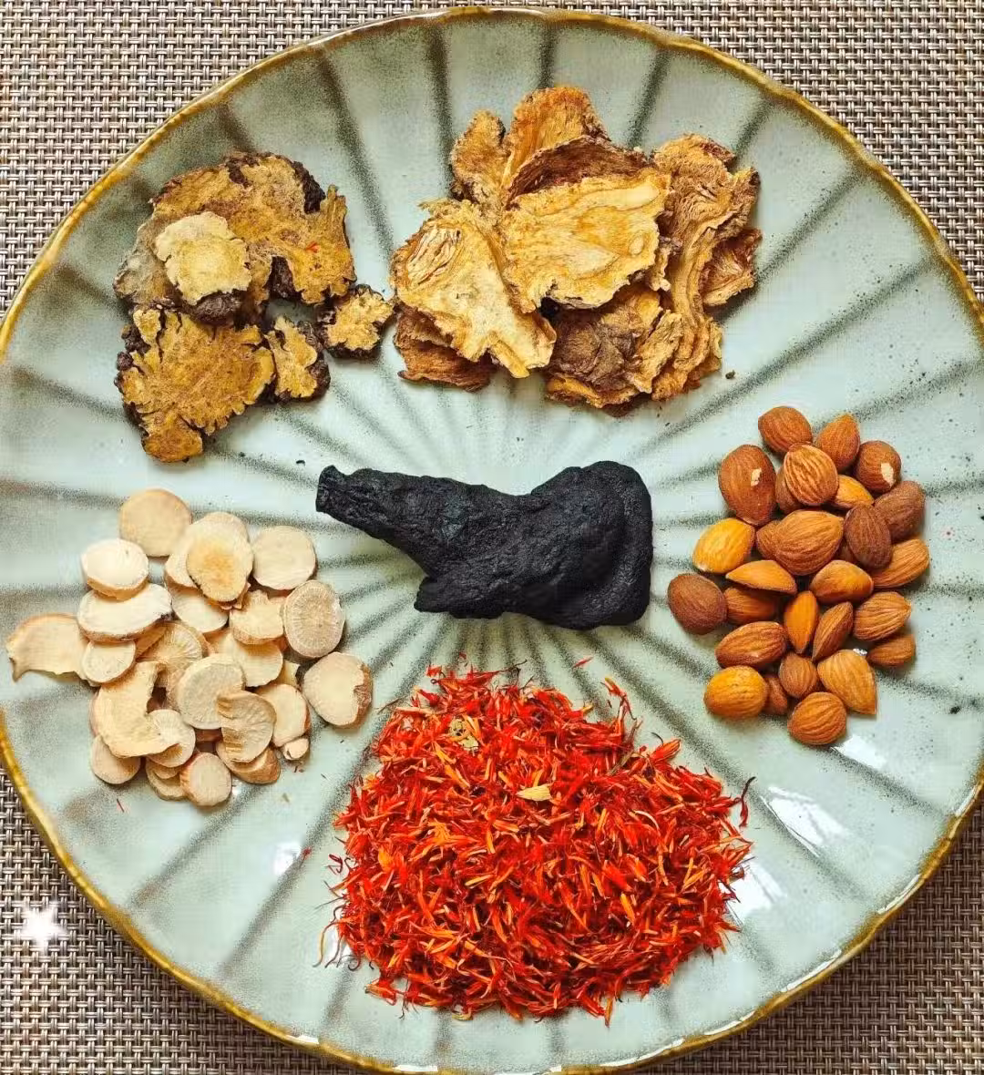白芍9g,當歸9g,熟地黃9g,川穹9g,桃仁9g,紅花6g