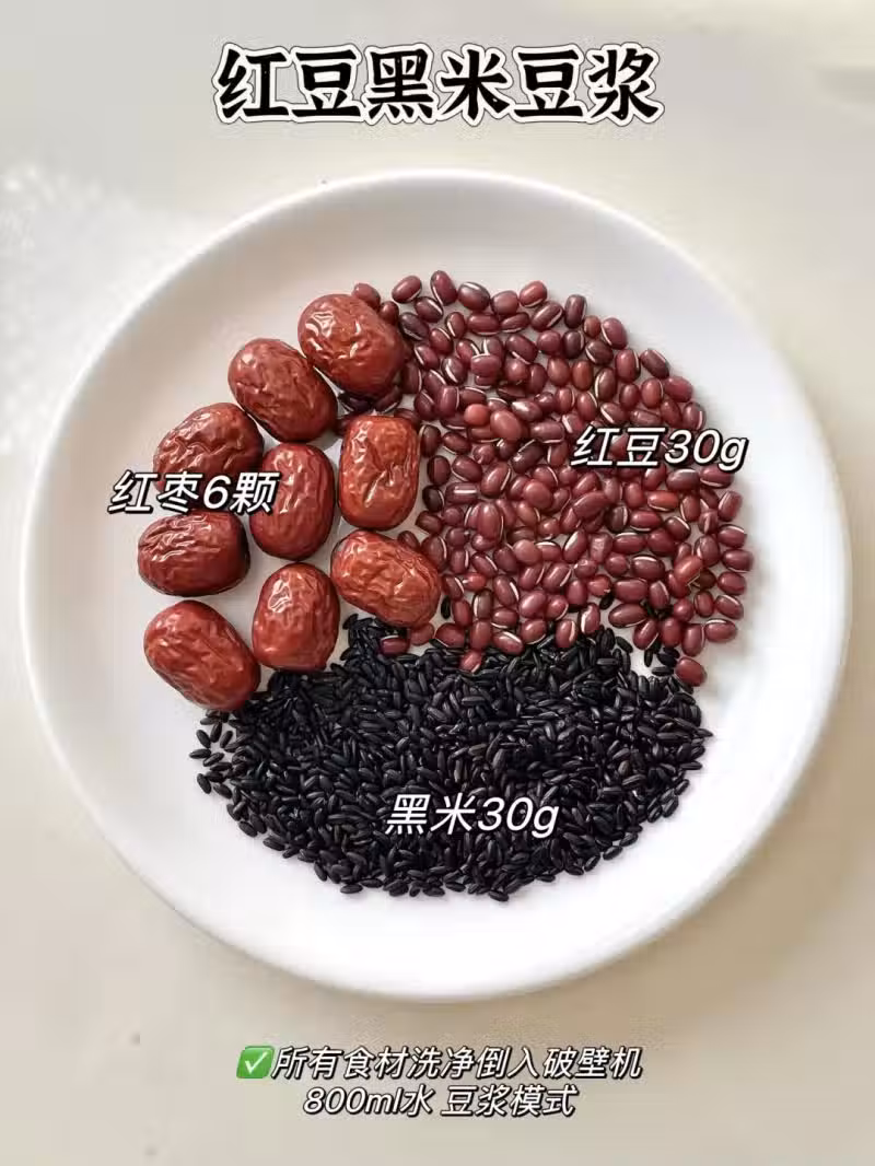 ☑️食材:紅豆30g、紅棗6顆、黑米30g