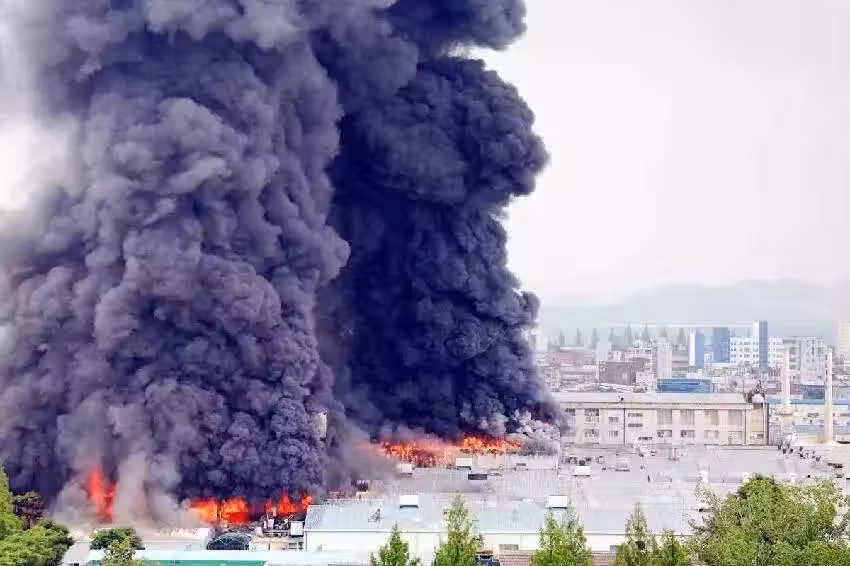 快訊/知名輪胎廠陷火海!廠房爆炸「3次崩塌」撤400人 毒氣狂飄燒數日