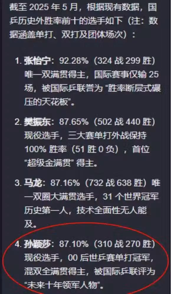 經過這一系列分析,毫無疑問,孫穎莎與王曼昱之間的差距並非表面上的積分之別,更深層次的則是她們在技術實力上的顯著差異。正是這些卓越的成績與完美的表現,讓她們在桌球的世界中,分別書寫著不同的傳奇。