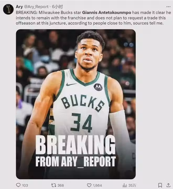 不走了!字母哥決定留隊!整個NBA都被耍了