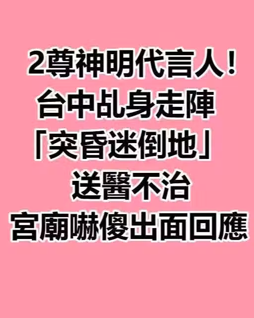 2尊神明代言人!台中乩身走陣「突昏迷倒地」送醫不治 宮廟嚇傻出面回應!