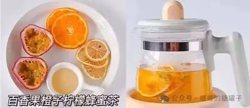 百香果、橙子和檸檬都是維生素C的「富礦」,搭配香甜的蜂蜜,不僅口感酸甜可口,還能為肌膚補充滿滿的營養,增強肌膚的抵抗力,讓肌膚更加水潤有彈性,堪稱肌膚的元氣飲品。