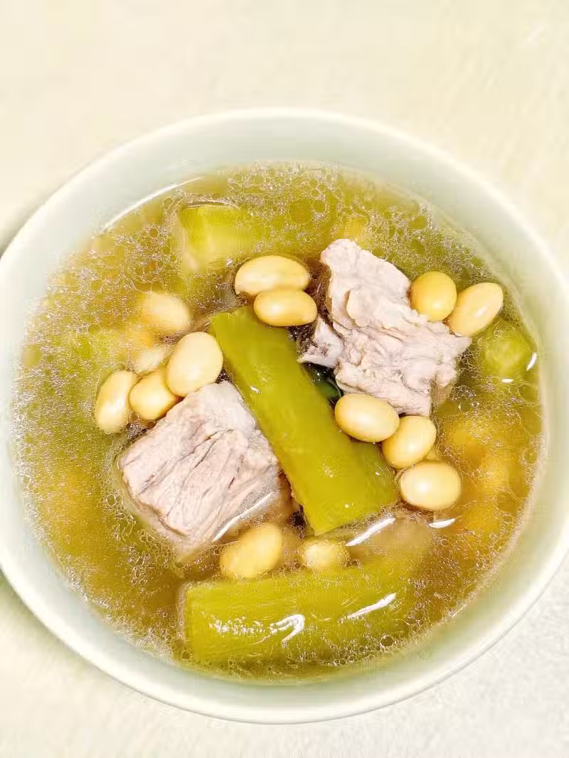 以前超怕吃苦瓜,後來被廣東同事安利了這道湯,喝完才知道有多香。苦瓜搭配黃豆、排骨,清熱降火又開胃,夏天喝一碗,暑氣全消。