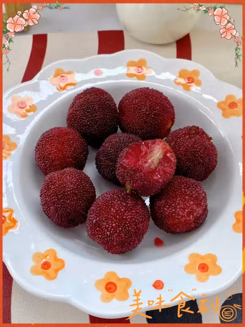 1. 楊梅放鹽水裡泡10分鐘,洗乾淨。