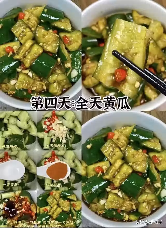 靈魂做法:黃瓜拍爛+小米辣+半勺鹽+辣椒麵,潑熱油激香!