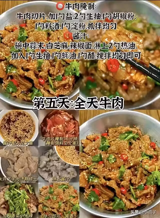 腌制公式:牛肉切片+1勺鹽+2勺生抽+胡椒粉+1勺料酒+澱粉,腌15分鐘。