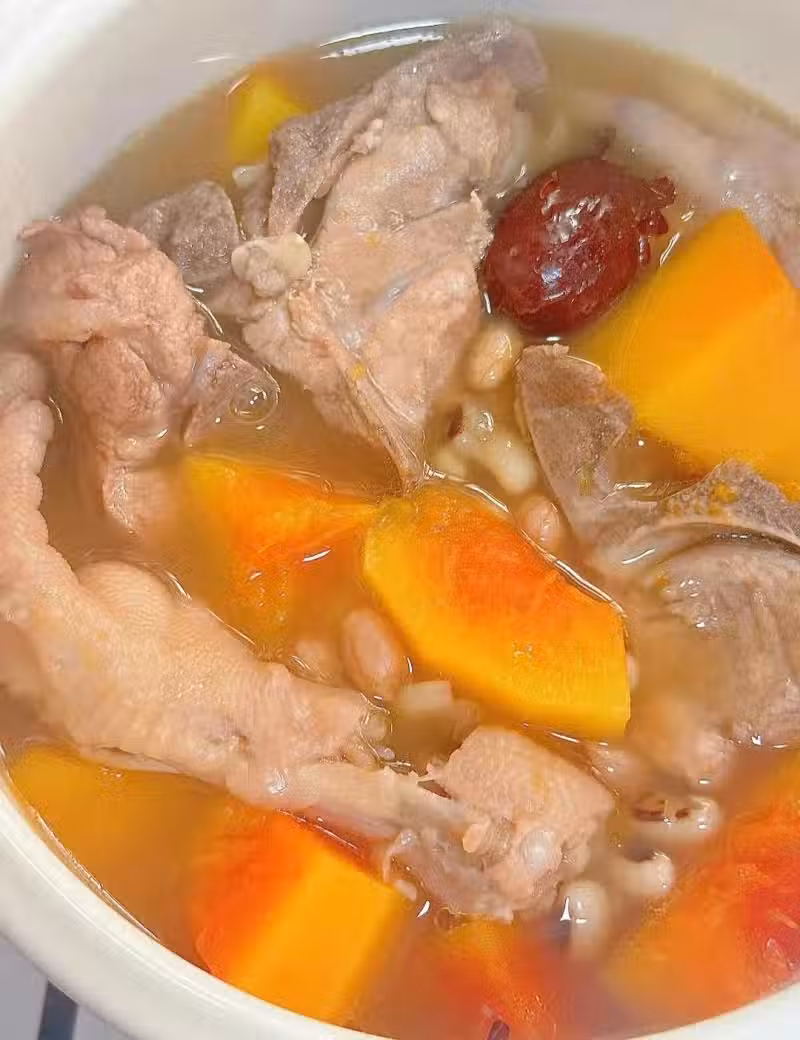 雞爪,豬骨,木瓜,花生,眉豆,紅棗,薑片,蔥結;