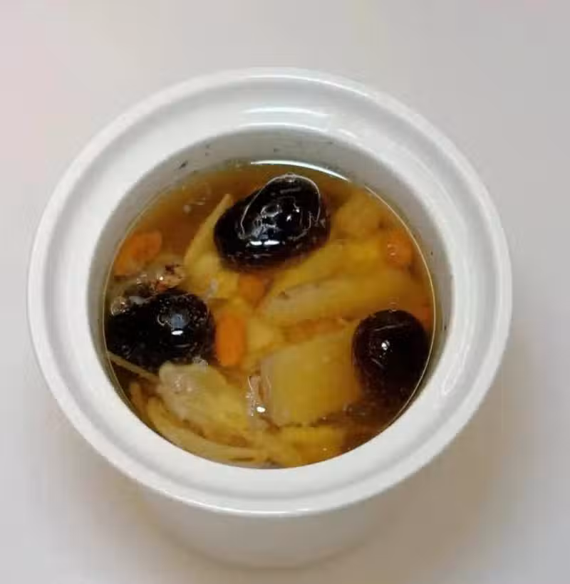 炒薏米、玉竹、沙參、黨參、蓮子、百合、枸杞、芡實、紅棗、豬肉、姜;