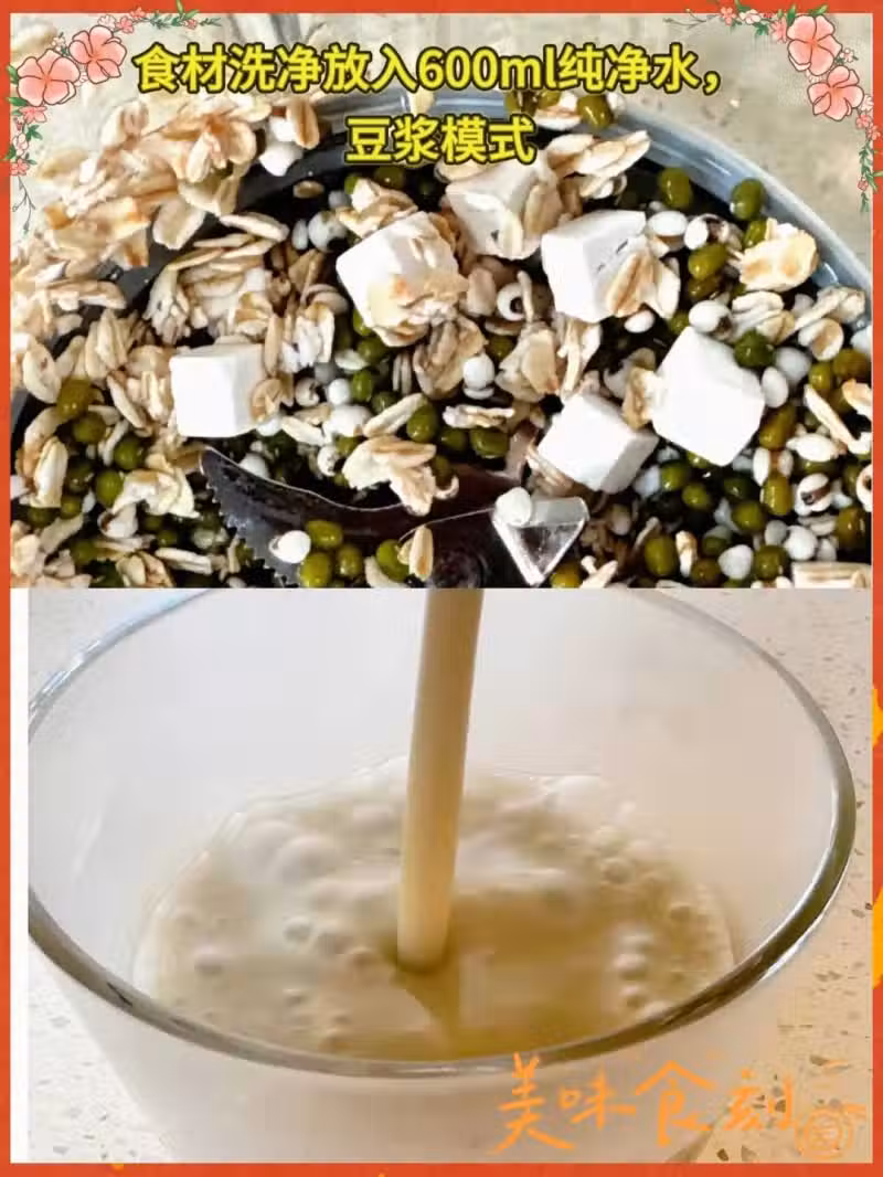2. 食材都倒入破壁機,加800毫升清水選擇豆漿模式;