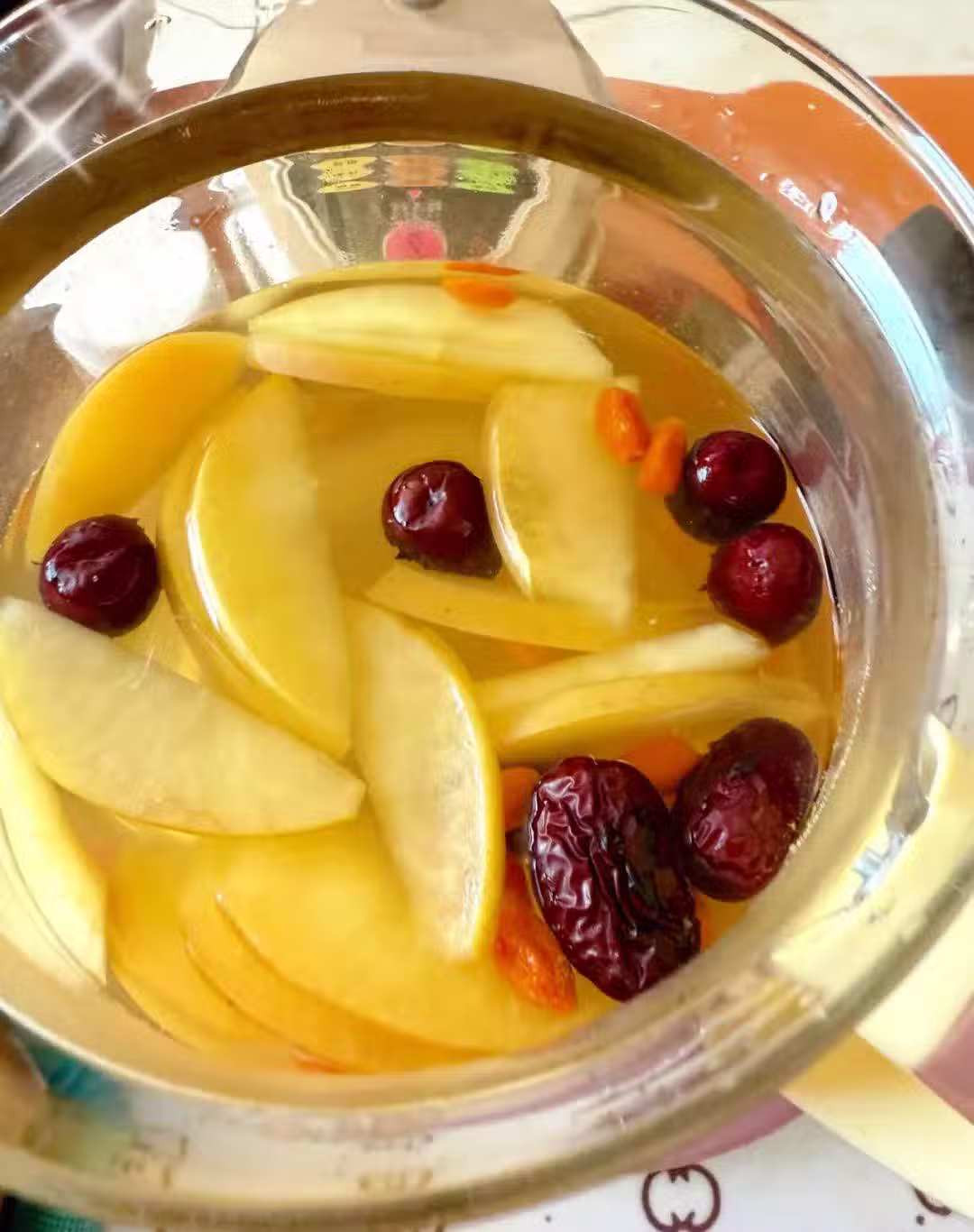 怕紅棗上火?試試這個「清補版」!蘋果生津潤肺,枸杞滋陰,焦棗補血不燥,整個搭配清甜溫和,就像給身體「慢燉」一壺滋潤湯水。堅持喝,皮膚不幹不燥,透出自然的光澤感。