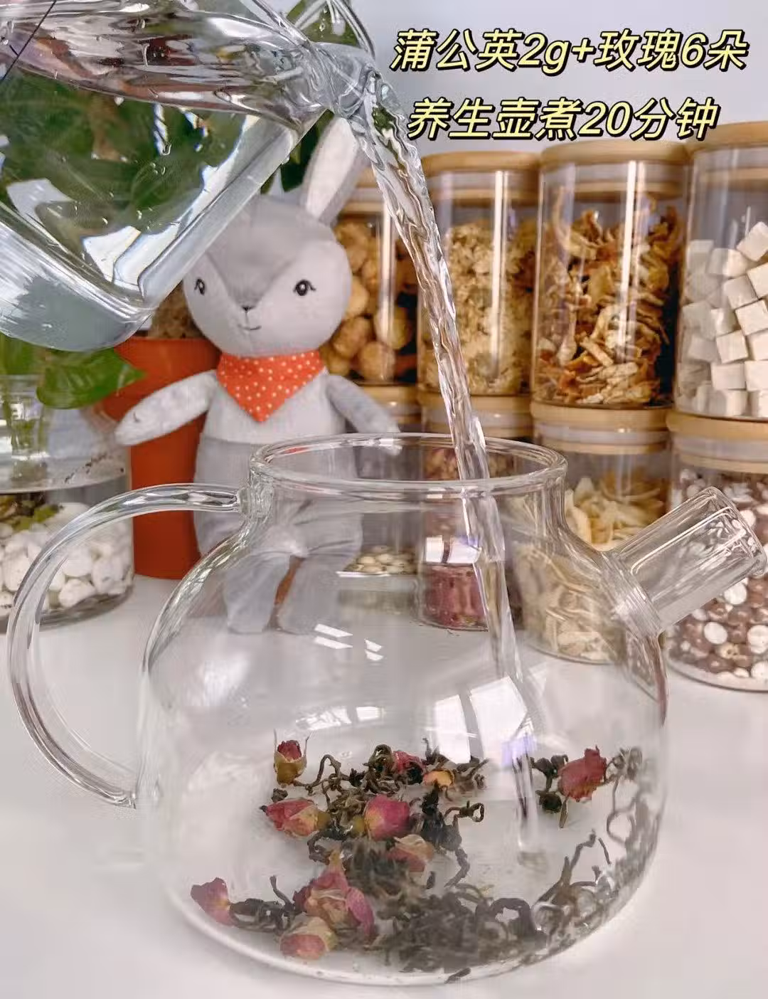 食用玫瑰8朵、蒲公英根5g、紅棗片10片、蜂蜜半勺