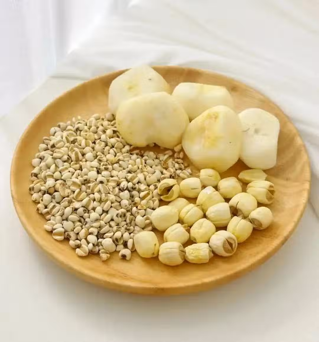 1️⃣、提前2-3小時把薏仁和白蓮子泡好,馬蹄切成小塊;