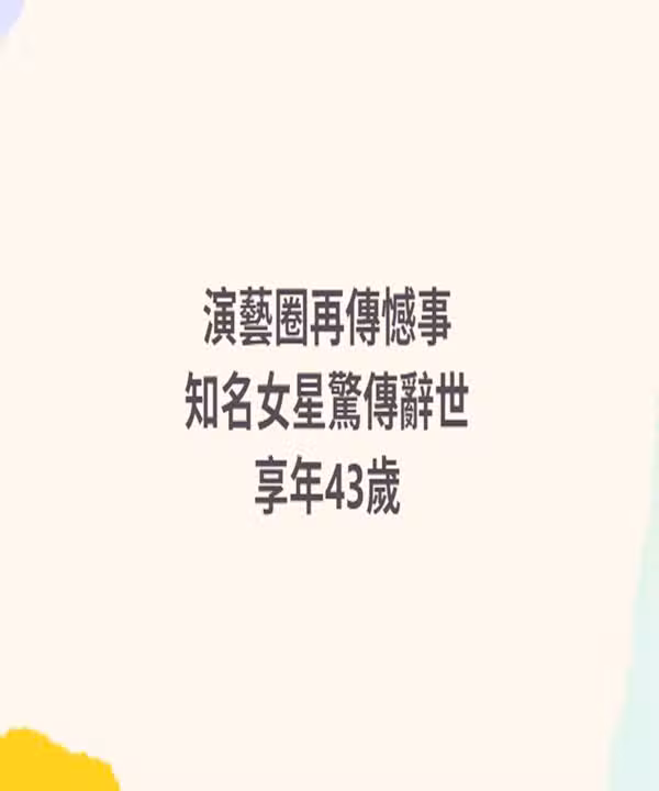 演藝圈再傳憾事!知名女星驚傳辭世,享年43歲
