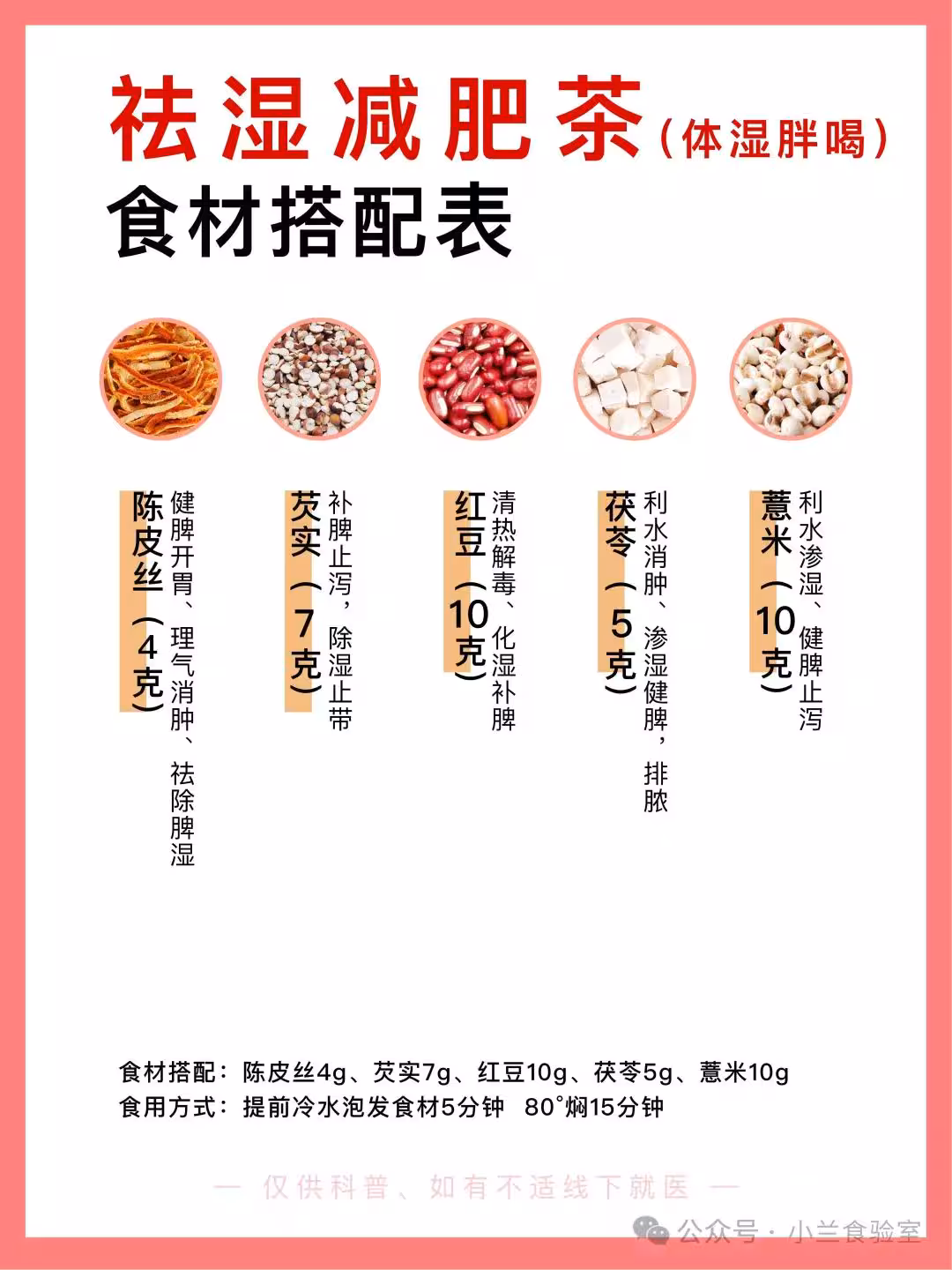 陳皮絲4g、芡實7g、紅豆10g、茯苓5g、薏米10g