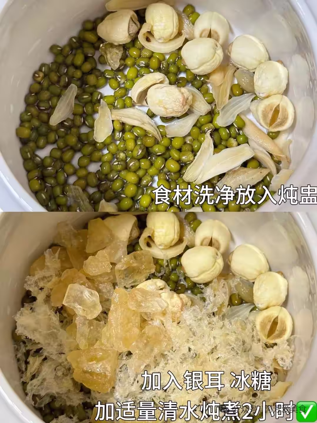 燉好的羹湯清潤微甜,銀耳軟滑,綠豆蓮子都起了沙。尤其蓮子那一點點清苦的回味,好像把心頭的熱氣悄悄拂走了些。溫溫的一碗落肚,夜裡身體都放鬆了。