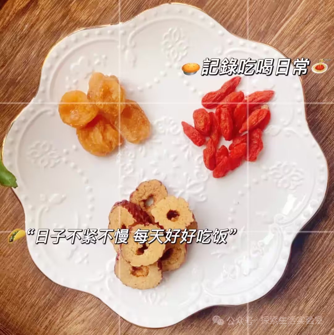 紅棗5顆、枸杞10克、桂圓乾6顆、冰糖適量