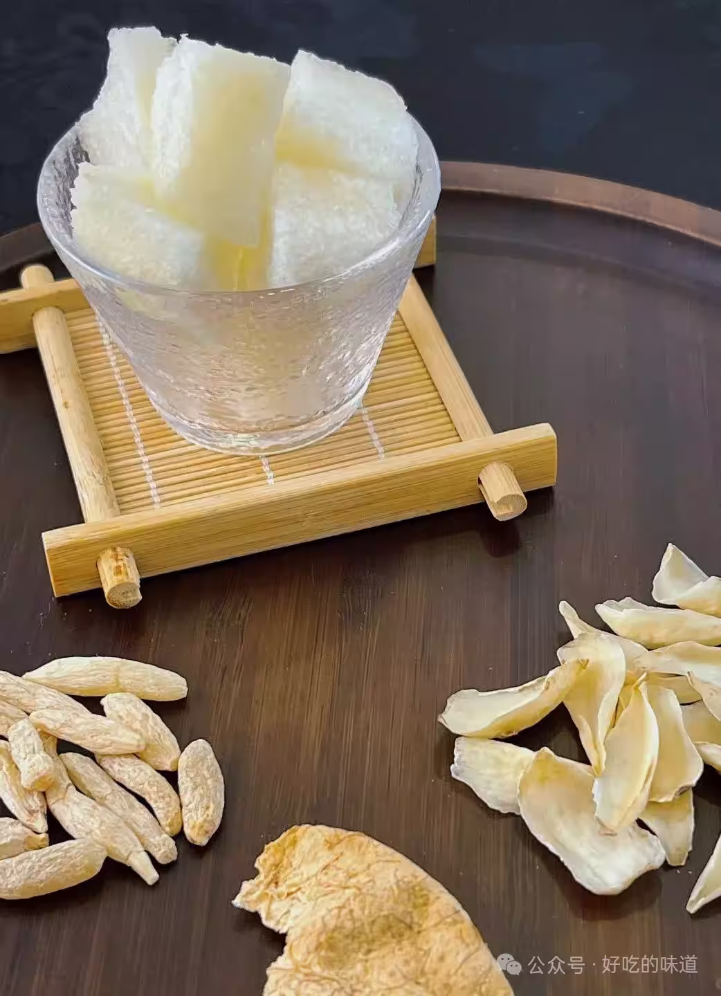功效:雪梨潤肺化痰,百合清心安神,搭配麥冬能緩解咳嗽痰黃、咽喉腫痛、便秘。