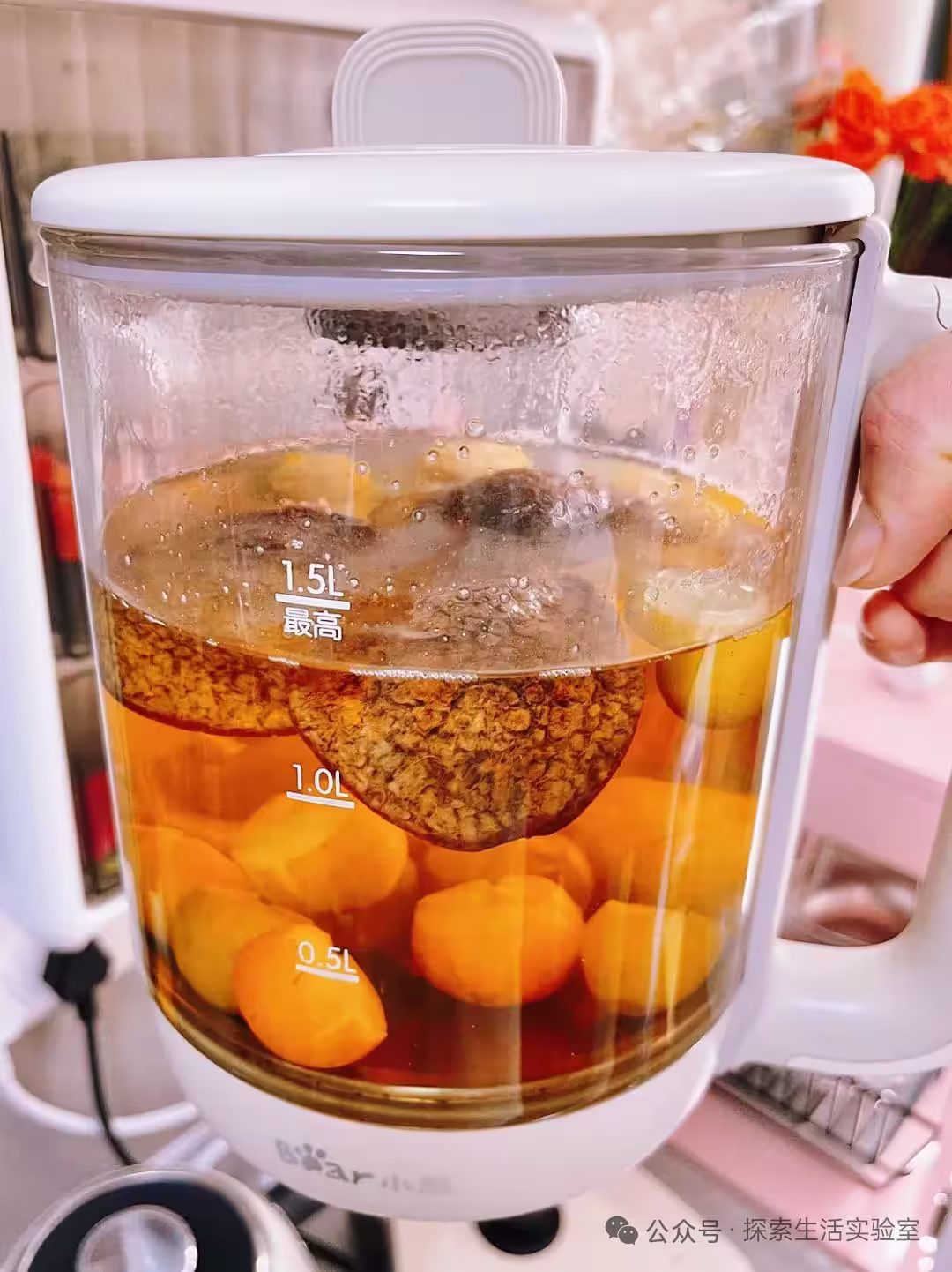 金桔帶皮煮最養人,我喝了兩周,臉看著比以前亮,不像以前那麼暗沉沉的。這金桔陳皮水喝起來酸甜,金桔皮的清香很提神,陳皮的味不沖,喝著像果汁一樣,下午來一杯,喝完臉也透著光。