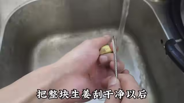 把整塊兒生薑刮乾淨以後,然後用水沖一衝就可以了,最後把生薑給它先切成生薑片,再改刀切成生薑絲,切好以後備用!