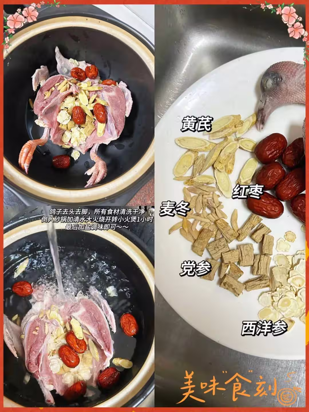 乳鴿(1隻)+黃芪(10克)+黨參(8克)