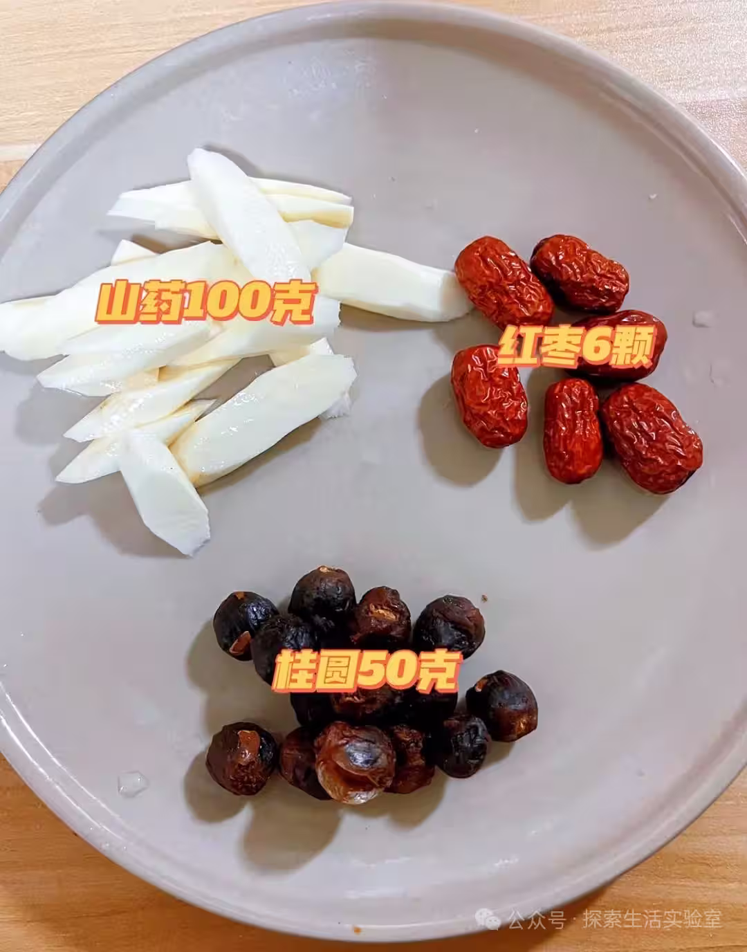 桂圓50g、山藥1小段(約100g)、紅棗6顆