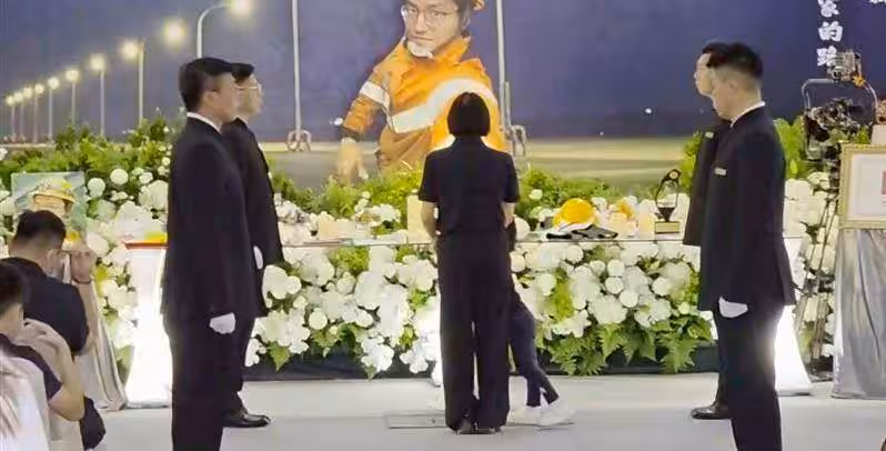 台電英雄告別式/李元瀚幼女懵懂,愛妻抱起鞠躬永別:今生來世永遠愛你!