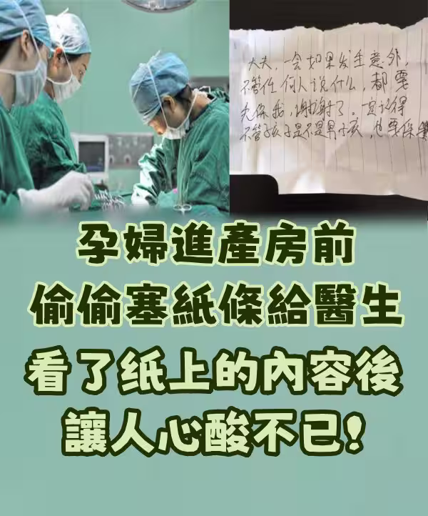 孕婦進產房前偷偷塞紙條給醫生,看了上面的內容後令人心酸不已!