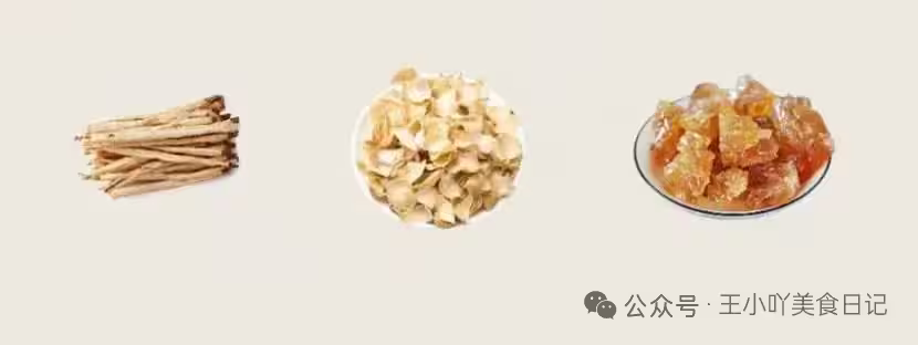 食材:北沙參10克,干百合6克,再加點冰糖調味。