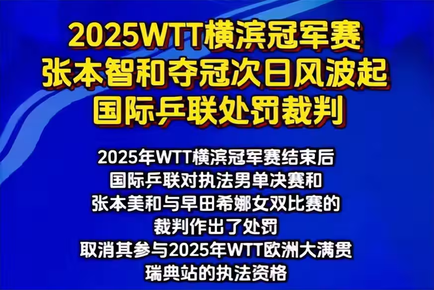 果然有貓膩,張本智和奪冠僅1天,國際乒聯出手,處罰當值裁判