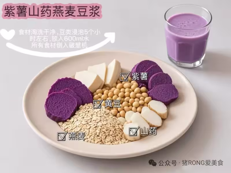 紫薯山藥燕麥豆漿 紫薯60g+山藥50g+燕麥+黃豆