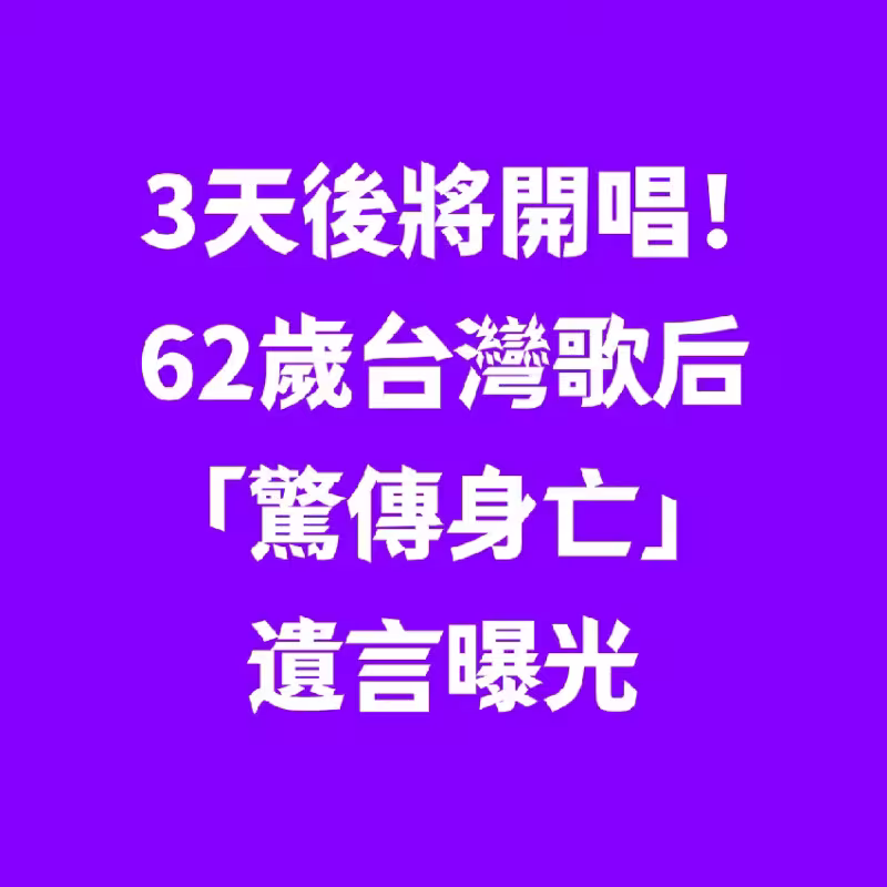 3天後將開唱!62歲台灣歌后「驚傳身亡」遺言曝光.