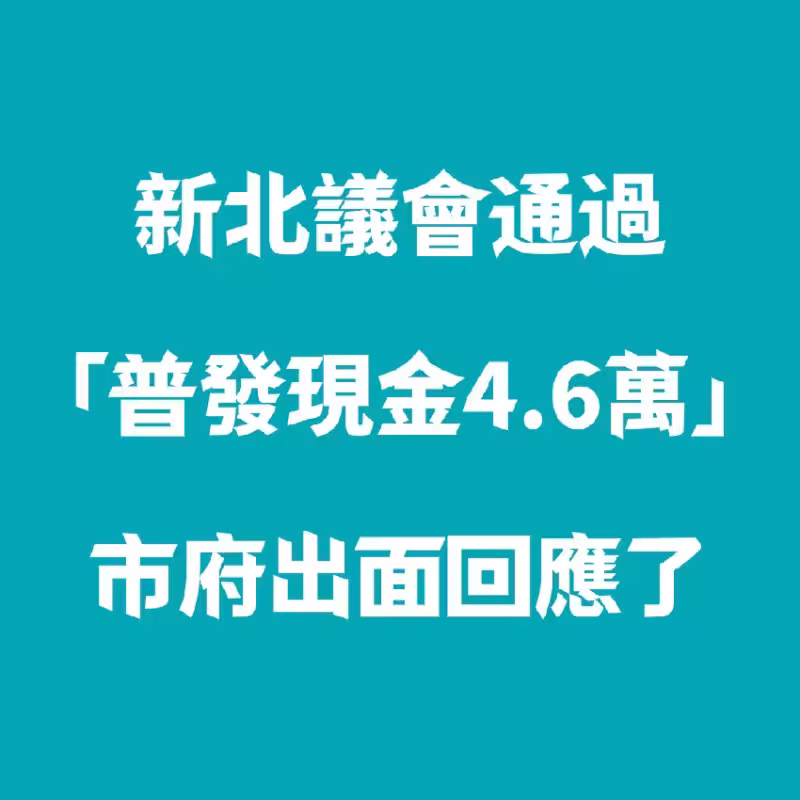 新北議會通過「普發現金4.6萬」!市府出面回應了。