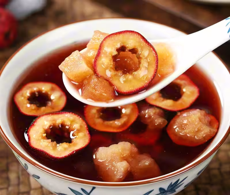 【功效】山楂富含有機酸和膳食纖維,能促進胃酸分泌、加速腸胃蠕動;蘋果富含果膠,吸附油脂並助排便。兩者搭配,尤其適合飯後腹脹、積食不化者。