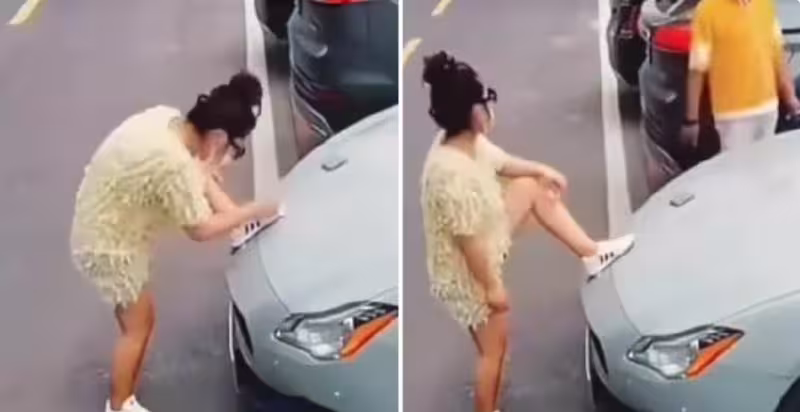女子腳踩豪車引擎蓋「擦鞋」!車主走來不鬧不鬧,淡定「1步伐」分分鐘讓她長記性