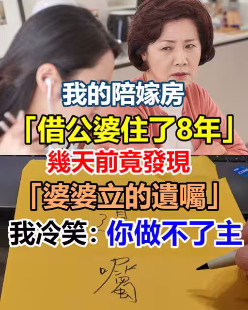 我的陪嫁房「借公婆住了8年」時間幾天前竟發現「婆婆立的遺囑」我冷笑:你做不了主