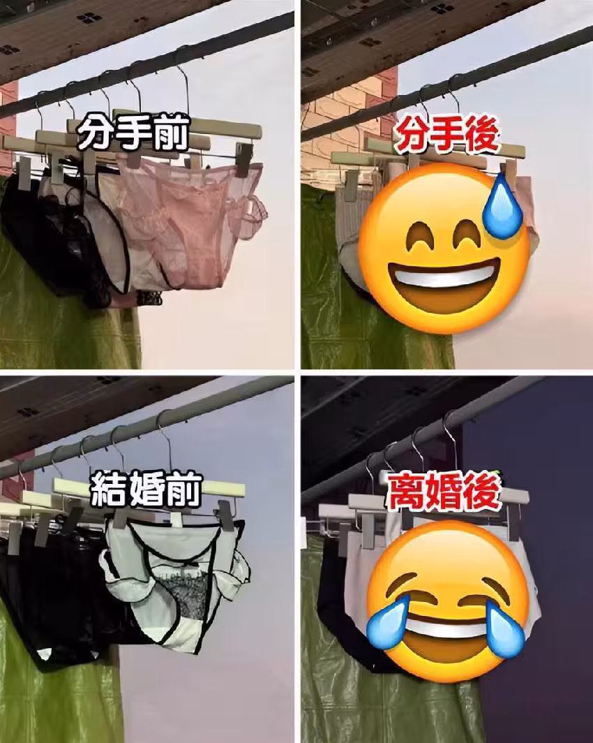 近日,台灣社交平台上,一則關於「分手、結婚前後穿內褲的差別」的幽默圖文引發了網友們的熱烈反應,不少網友直呼:「這也太真實了吧!」儘管話題本身帶有些許輕鬆和搞笑的成分,但也令人不禁思考,隨著戀愛關係的變化,許多女性在生活細節上的態度與習慣究竟發生了怎樣的變化。