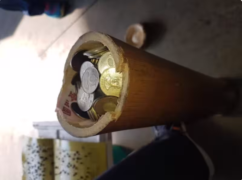 真的敲竹槓!160公分竹筒「塞滿硬幣紙鈔」有夠狂 剖開細數「多到2個人數不完」羨煞上萬網友