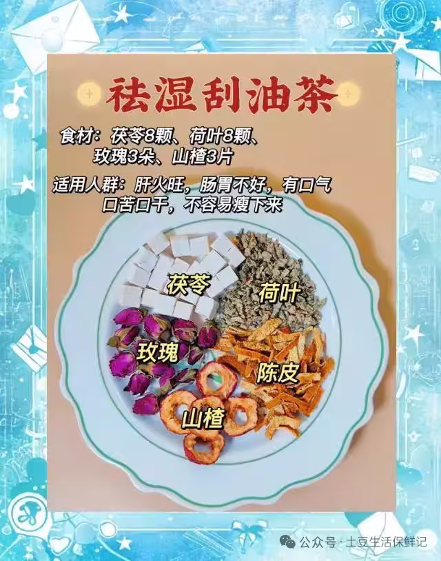 山楂味酸甘,能消食化積、活血化瘀,與茯苓搭配可健脾開胃、促進消化。取茯苓15克、山楂干10克,加水煮沸後小火煮15分鐘,可根據喜好加少量紅糖。這款茶適合夏日飲食油膩後出現消化不良、腹脹的人群,能幫助分解油膩食物,減輕腸胃負擔,讓腸道蠕動更有力,減少積食困擾。