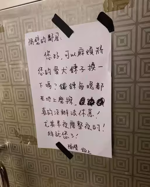 鄰居每晚傳鐵鏈聲!正妹失眠留紙條「愛犬鏈子換一下」,隔天「被反嗆1句」她傻眼了