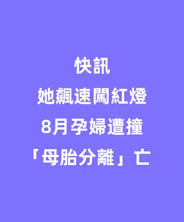 快訊//她飆速闖紅燈 8月孕婦遭撞「母胎分離」亡