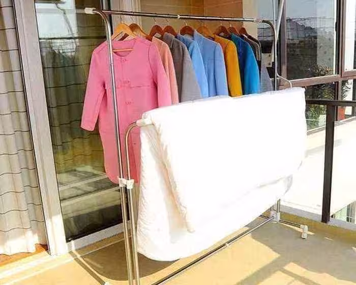 很多情況我們家中沒有那麼多可以晾衣服的地方,我們可以購置即可以在陽台上晾衣服的衣架,這樣晾衣架適合於小房子。