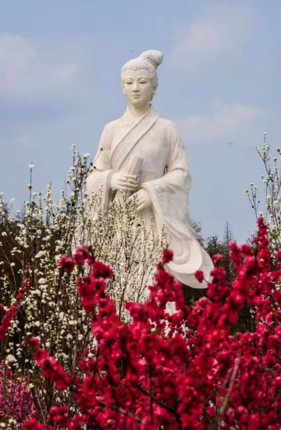 今天的息縣,桃花仍是城市圖騰。每年三月,息夫人文化園的桃林如雲霞鋪展,那座漢白玉雕像靜靜立在花海中,她望向息國故城的方向,掌心托著一朵永不凋零的銅桃花。當地老人說:「桃花夫人不說話,可淮河的水聲,都是她的嘆息。」