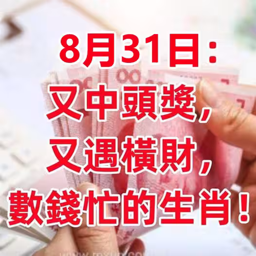 8月31日(8月最後一天)又中頭獎,又遇橫財,數錢忙的生肖!