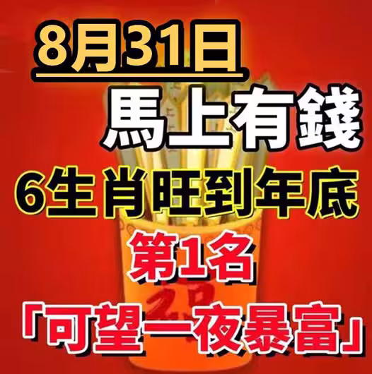8月31日馬上有錢,6生肖旺到年底,第1名財運狂飆「可望一夜暴富」