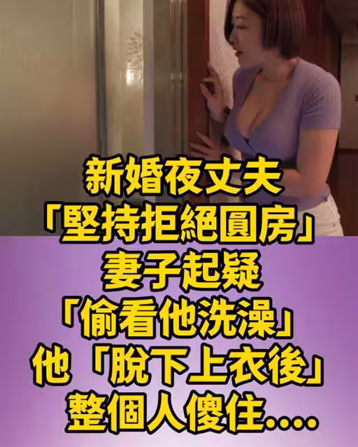 新婚夜丈夫「堅持拒絕圓房」!妻子起疑「偷看他洗澡」....他「脫下上衣後」整個人傻住