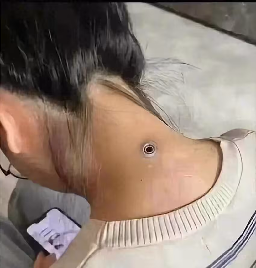 國外回來的表姑,脖子竟多一個「神秘金屬孔」 看完猜想:嚇的不敢說話了