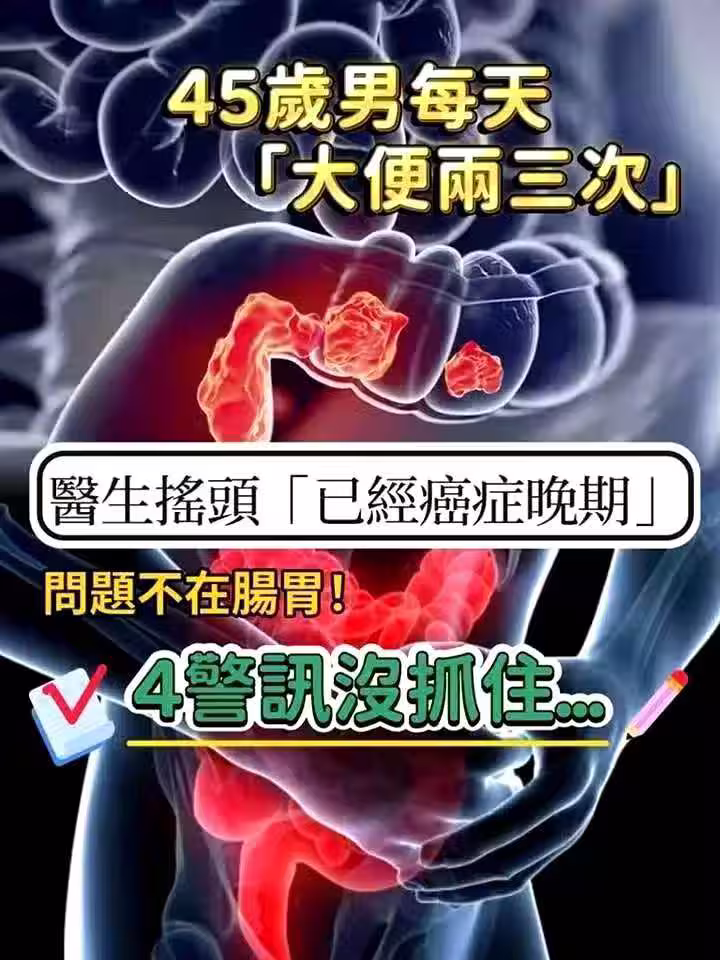 才45歲!他每天「大便兩三次」, 以為消化好,醫生搖頭「已經癌症晚期」,4個異常沒注意!
